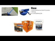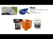 • 50ft of 1.5in diameter lay flat hose with pre-connected aluminum quick fit connections